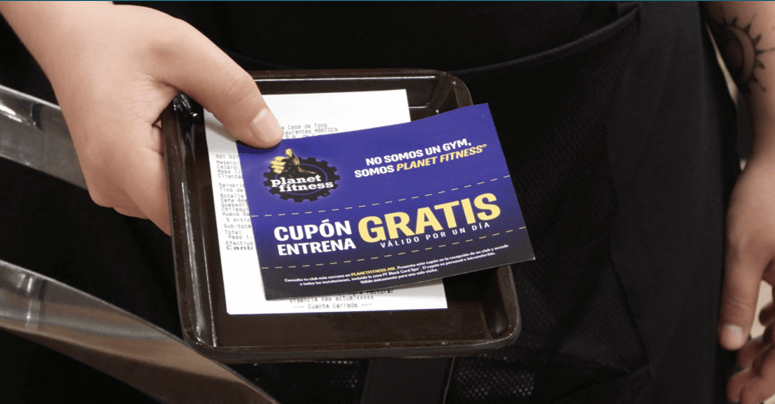 Entrega de cupón o beneficios directos al momento de recibir la cuenta y ticket de compra.