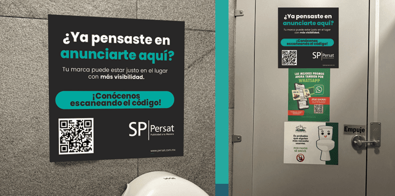 Publicidad colocada en la parte interior de las puertas de los sanitarios, garantizando una atención exclusiva en un espacio privado y sin distracciones.