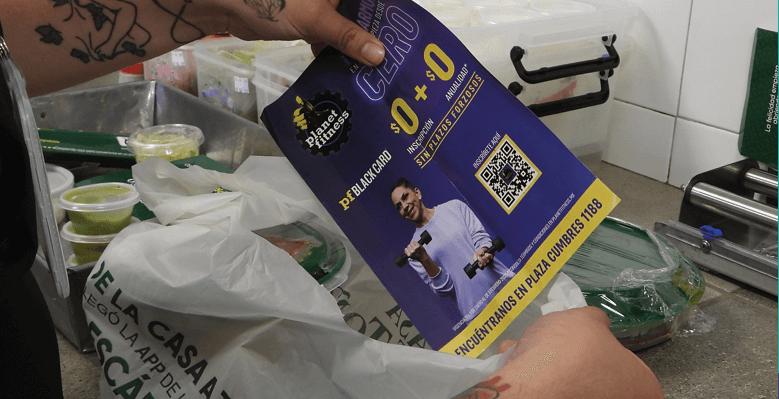 Colocación masiva de flyers con tu publicidad, dentro de los pedidos de pick up y delivery.